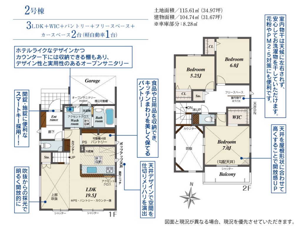 | 間取内容 | LDK 19.5畳 洋室 7畳 洋室 6畳 洋室 5.25畳 +WIC+パントリー+フリースペース | ||