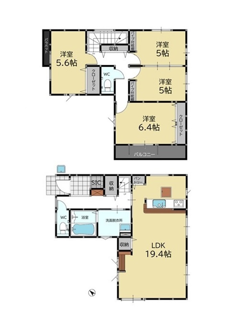 | 間取内容 | LDK 19.4畳 洋室 6.4畳 洋室 5.6畳 洋室 5畳 洋室 5畳 +SIC | ||
