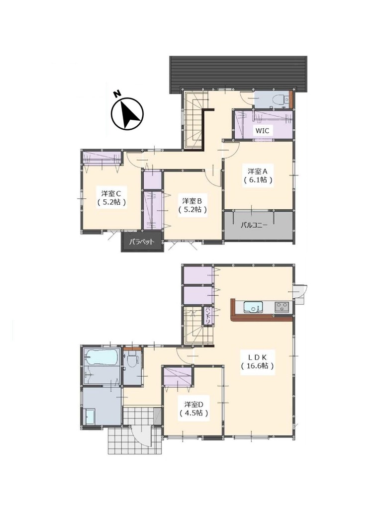 間取内容 LDK 16.6畳  洋室 4.5畳  洋室 6.1畳  洋室 5.2畳  洋室 5.2畳