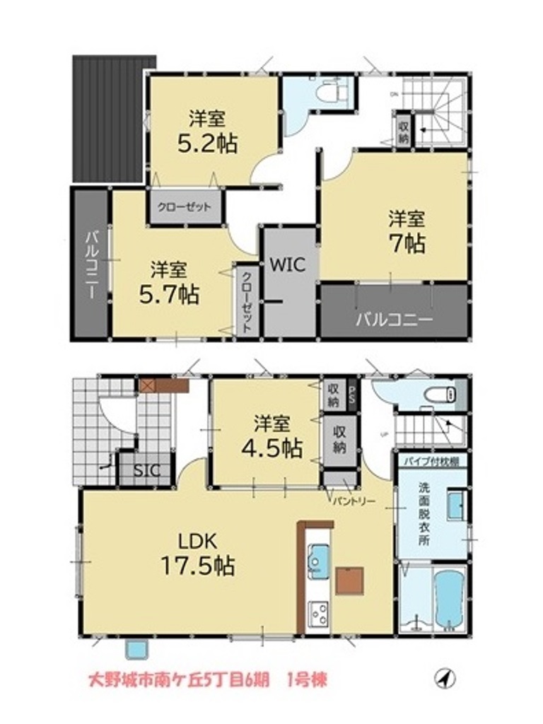 | 間取内容 | LDK 17.5畳 洋室 4.5畳 洋室 7畳 洋室 5.2畳 洋室 5.2畳 +SIC+WIC | ||