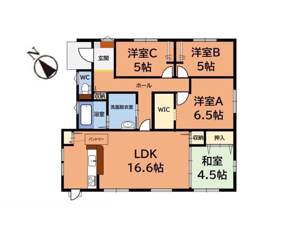 | 間取内容 | LDK 16.6畳 和室 4.5畳 洋室 6.5畳 洋室 5畳 洋室 5畳 +WIC | ||