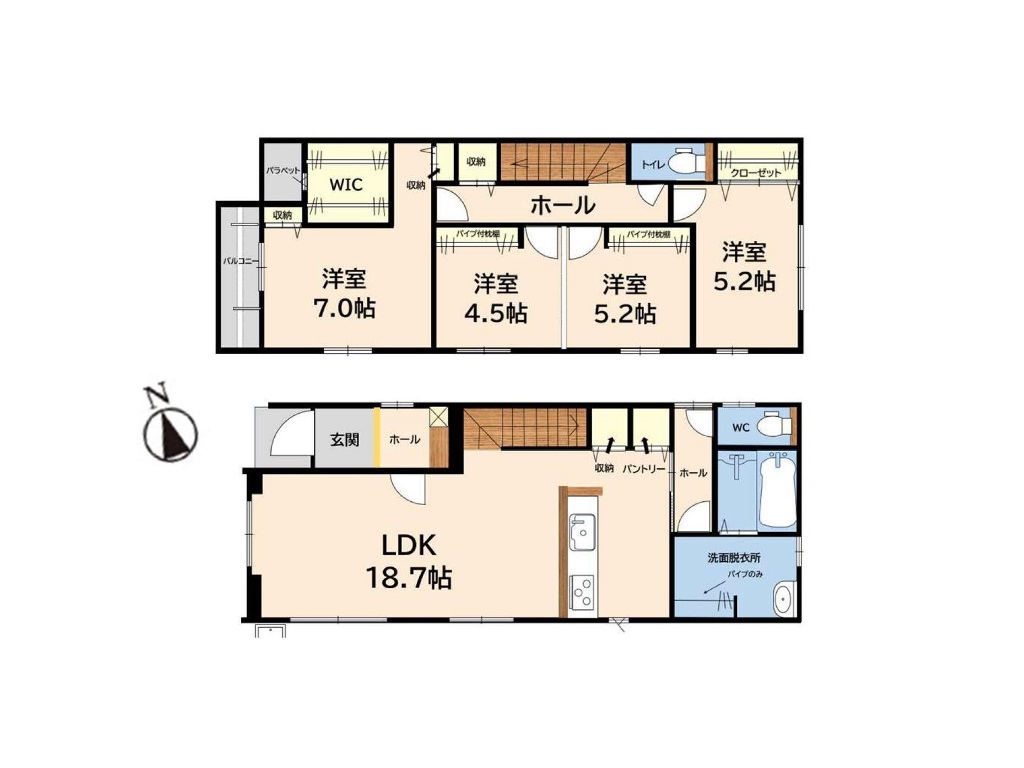 | 間取内容 | LDK 18.7畳 洋室 7畳 洋室 5.2畳 洋室 5.2畳 洋室 4.5畳 +WIC | ||