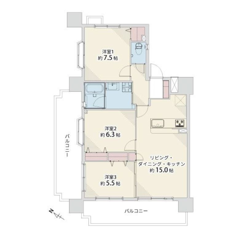 | 間取内容 | LDK 15畳 洋室 7.5畳 洋室 6.3畳 洋室 5.5畳 | ||