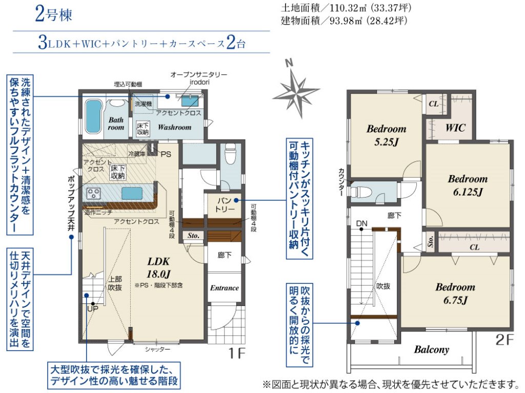 | 間取内容 | LDK 18畳 洋室 6.75畳 洋室 6.125畳 洋室 5.25畳 +パントリー+WIC | ||